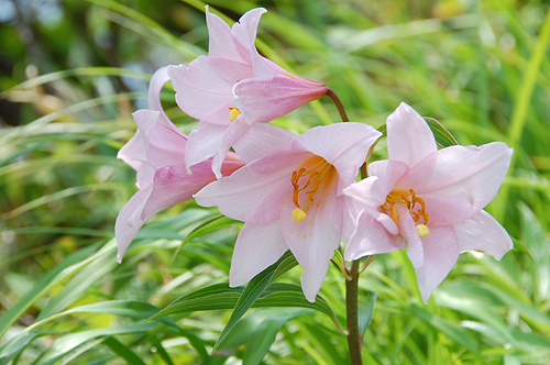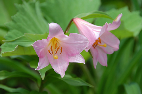ユリ科の花で新潟、福島、山形の山域周辺にしか群生していない貴重な花です。ウィキペディアによると「野生種は環境省のレッドリストでは準絶滅危惧」とのこと。可憐なピンク色の花は一見の価値あります。