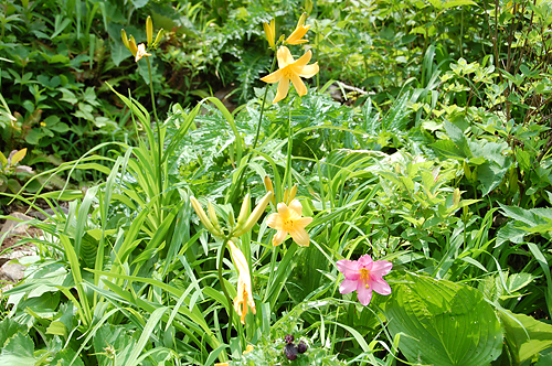 大岳南斜面にヒメサユリは咲いていました。大岳南斜面は結構急坂なので登りで使うのが良いでしょう。お勧めは二口登山口から登り青雲岳を経て守門岳のピークを踏み、帰路は大岳から保久礼登山口を使う周回ルートでしょう。
