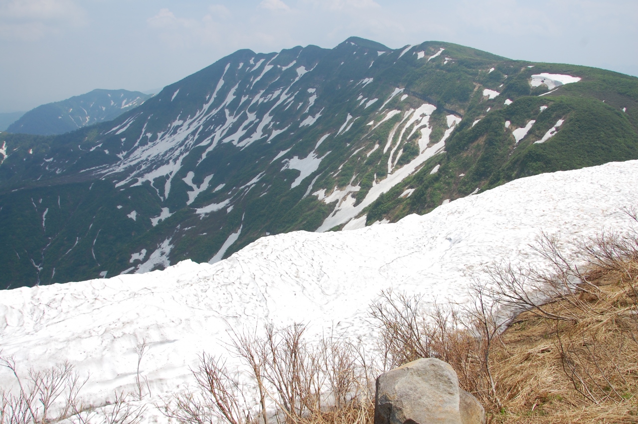 最高点の守門岳の他に前衛にある青雲岳(名前が良いですね)、大岳があります。登山道はありませんが稜線から見える烏帽子岳の景色としては良い感じです。