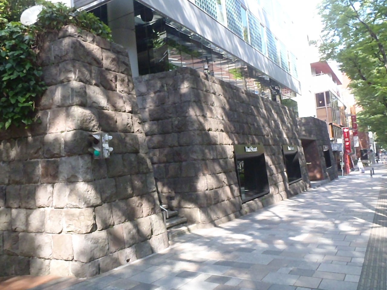 店舗の外装が重厚な石垣で、そこをくりぬいた形の店舗なのですが、明治時代明治天皇を祀る明治神宮を創建当時表参道の両側を石垣で覆った名残だそうです。