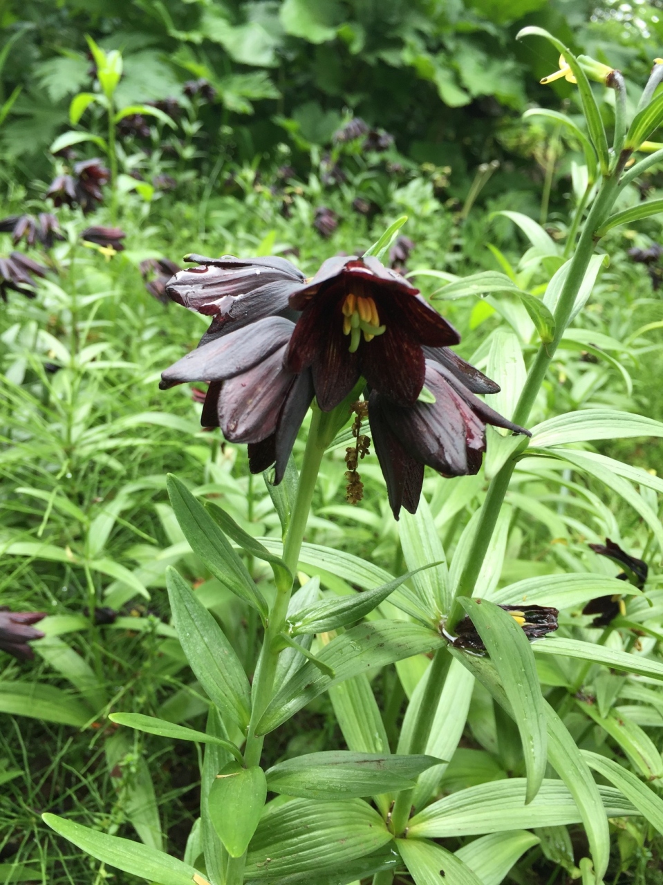 昔は北大キャンパスにたくさん群生していたクロユリを ここ花木園で復活させているらしい。
