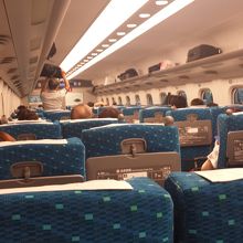 東京~名古屋で利用しました。相変わらず、時刻も正確で、本数も多く素晴らしいです。普通の指定席ですが、足元スペースは広くて快適です。隣の席との間に、肘掛けがひとつしかないので、横のスペースでは、少し気を使います。電源サプライも重宝です。