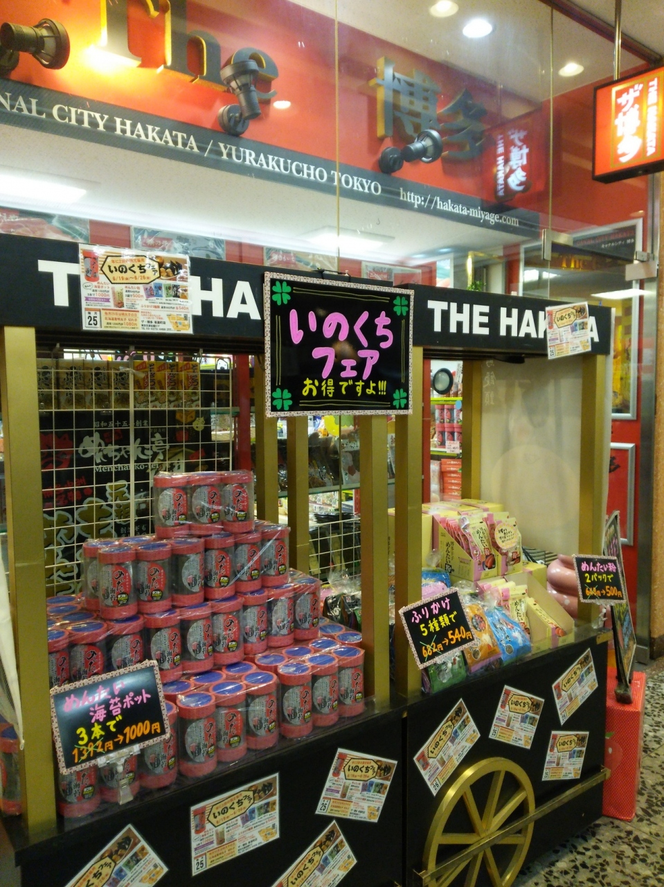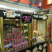 東京交通会館地下1階にある博多のアンテナショップです。店内はそれ程広くはありませんが、博多ラーメン(とんこつラーメン)や明太子など博多の物産品や特産品など、出張で博多に行ったときに空港や駅で見かけるおみやげがたくさん取り揃っていました。