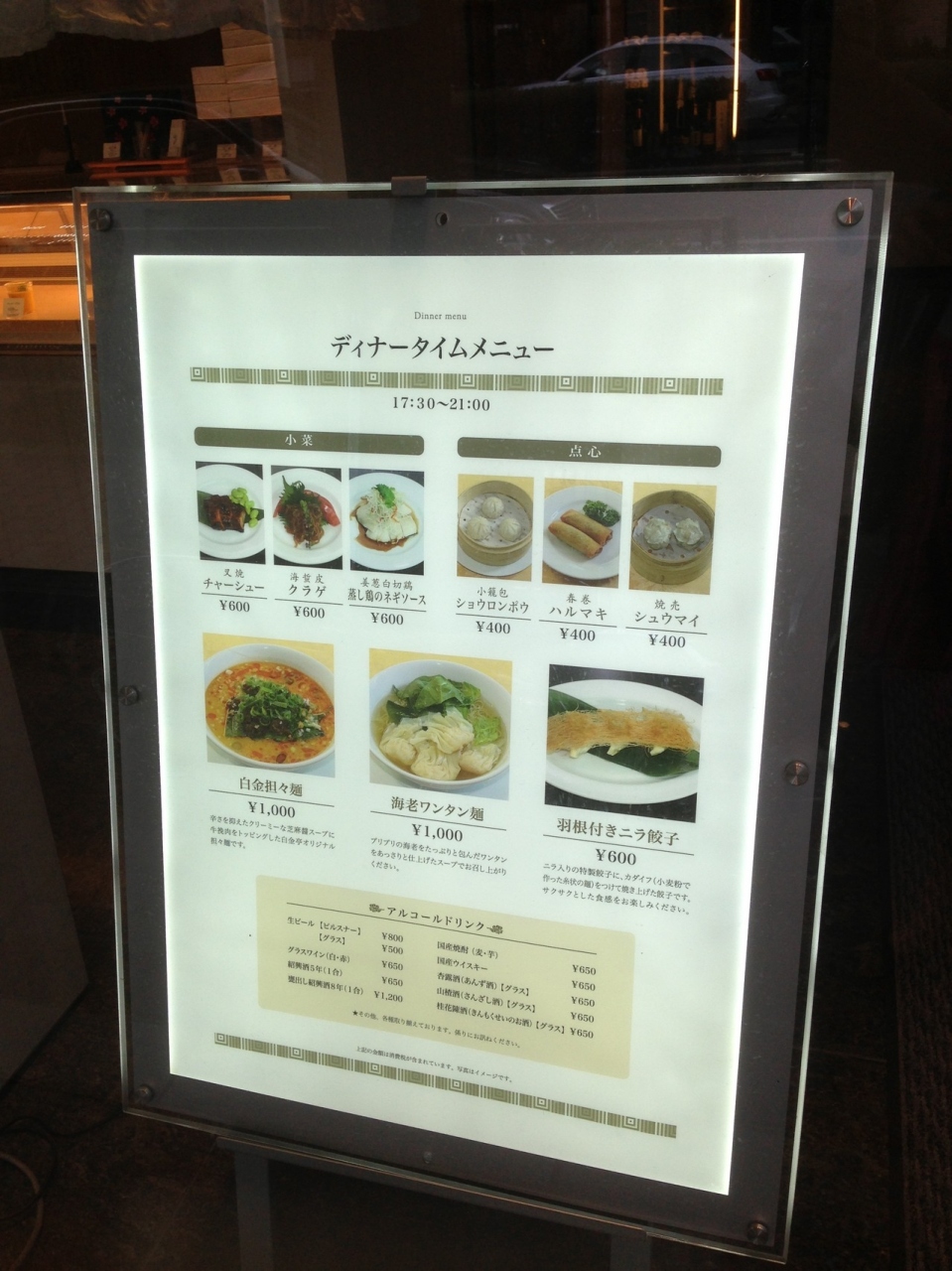 一階のカフェスペースでのランチだけでなく、ディナーもリーズナブルに頂けます。担々麺なども千円から。