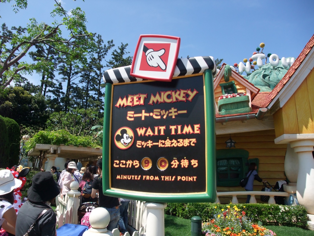 ミッキーに必ず会える人気のスポットで、日曜の9時くらいに行きましたが会うのに2時間半くらいかかりました。