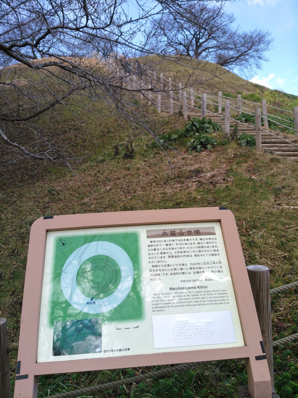 行田市のさきたま古墳公園内にある古墳で、有名な前方後円墳でなく円墳です。円墳の大きさとしては最大級の大きさだそうで、上まで階段が整備されているので登って市内を一望することができます。忍城攻めの際は石田光成が頂上に本陣を置いたと言われています。