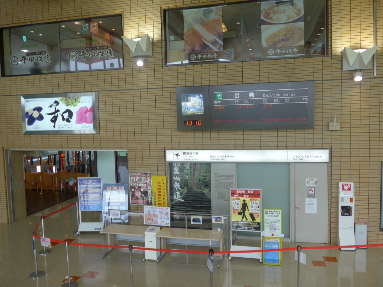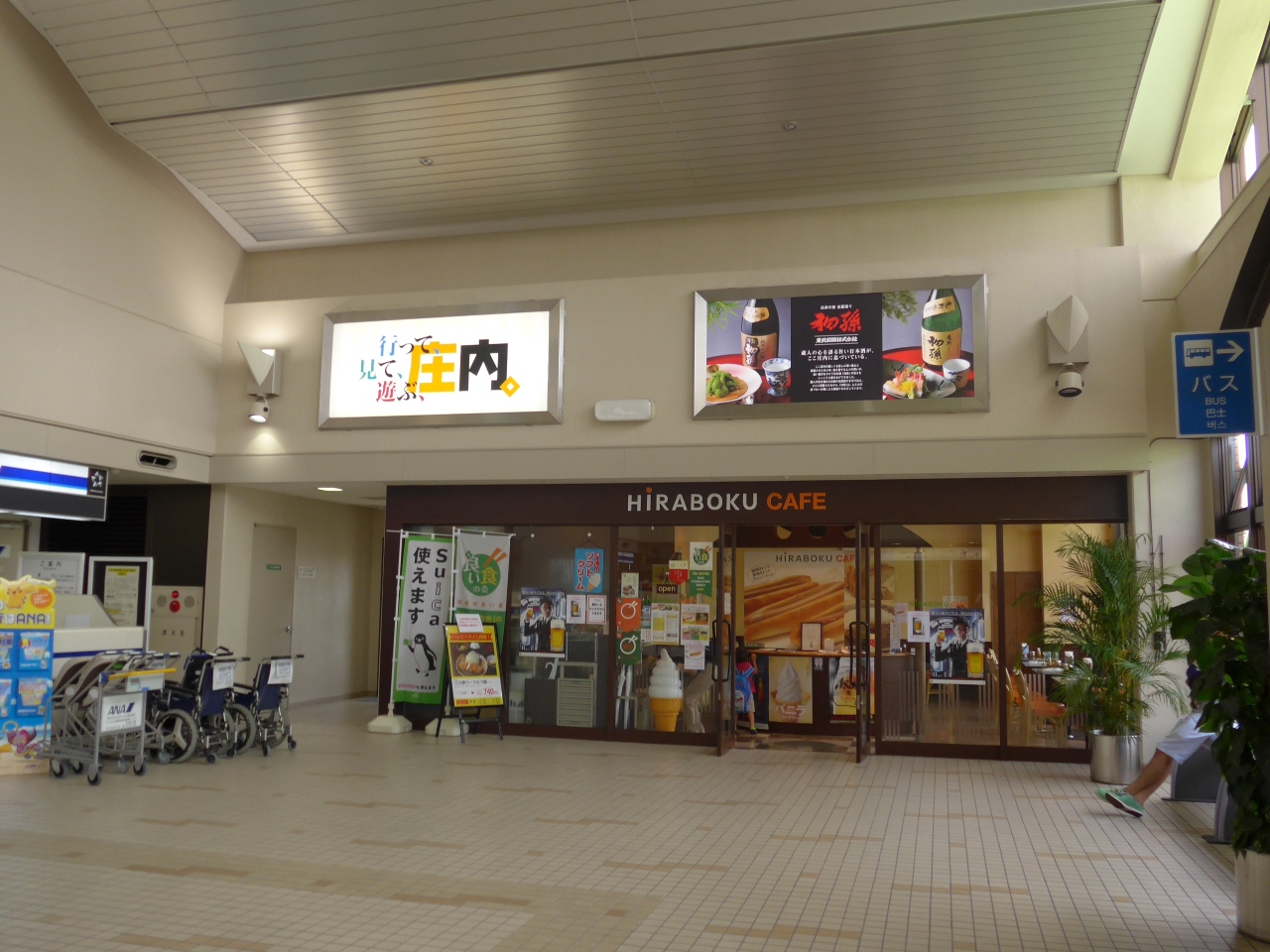東京と山形庄内(酒田)を現在(2015年6月時点)、1日ANA瓶が4往復就航している空港です。空港ビルは三階建てで1階には航空会社の受付カウンターと飲食店・到着口、2階がお土産品の売店と出発口、そして3階にレストランがあります。