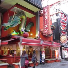 大きな龍のオブジェの看板が目印。といっても道頓堀に巨大看板は珍しくない。