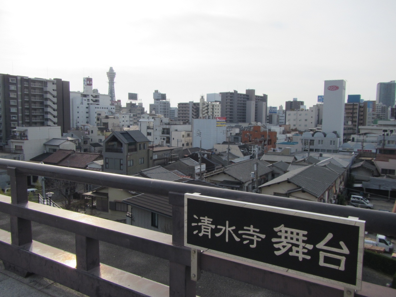 ここからは天王寺を一望、というわけにはいかないが、近くの街並みや遠くはあべのハルカス、通天閣が見える。