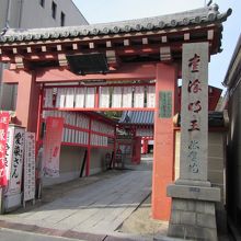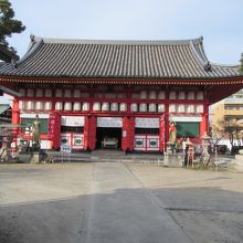 住宅街にありながらも朱塗りの山門がよく目立つ。