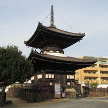 本堂(愛染堂)の奥には大日如来の奉られた多宝塔があり、本堂と多宝塔は重要文化財に指定されている。