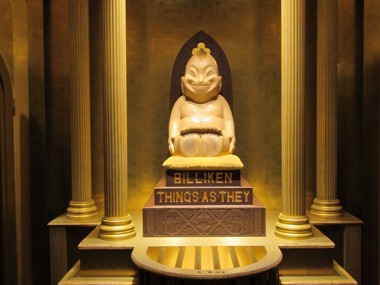 ぐるっと回ると金のビリケン様像が安置されており、足をさするための行列が絶えない。