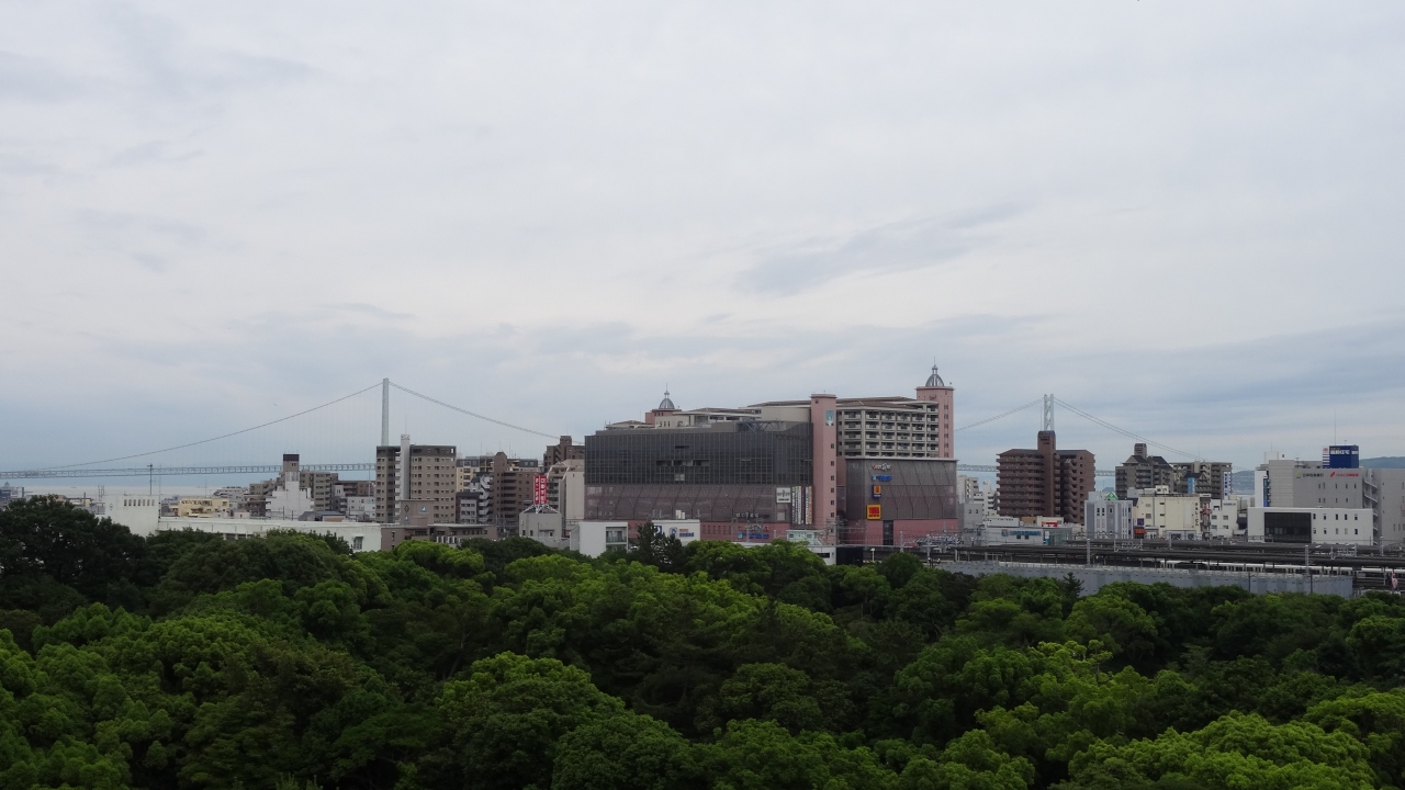 明石海峡大橋も眺めることができます(ちょうど、真ん中が大きな建物で隠れますがw)。