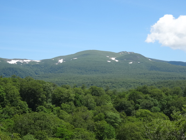 栗駒山は紅葉の季節がよいですが、残雪の残る時期も緑と白のコントラストがきれいでした。
