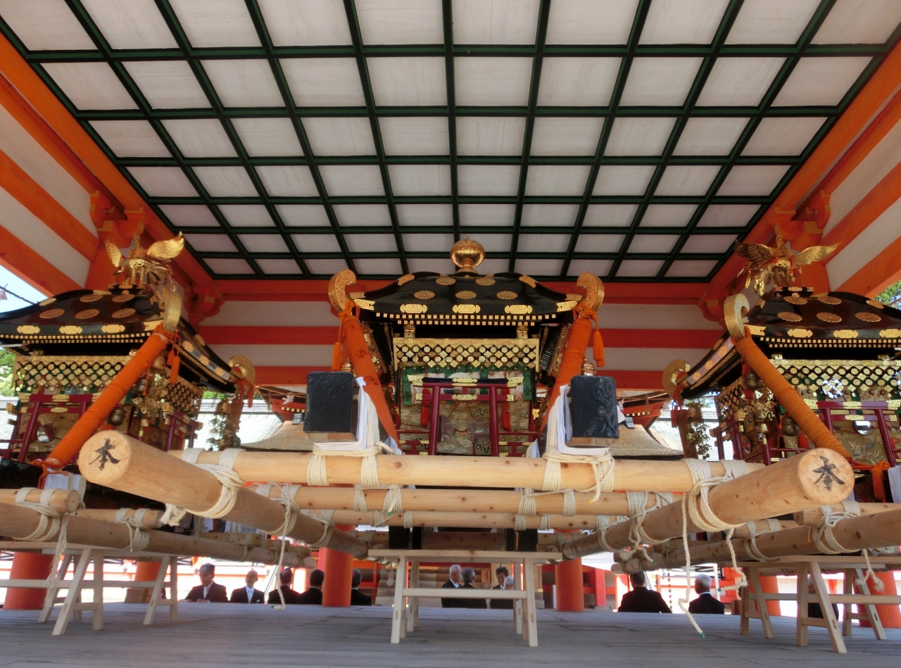 ただ、楼門や高舞殿、回廊などは全て朱塗りですので、近くに寄れば厳かさを感じます。