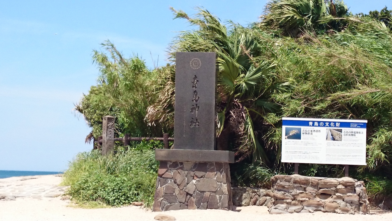 亜熱帯の植物がたくさん茂っている中に神社が