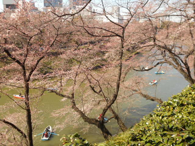 毎年、桜の咲く頃は、必ず、見物に行きます。お濠にかかる何本もの桜の枝に風情を感じます。土手沿いの狭い小道が朝から夜まで花見客で混み合い、肩がぶつかる程です。ここから北の丸公園、九段、靖国神社の桜と、桜見物に酔いしれます。