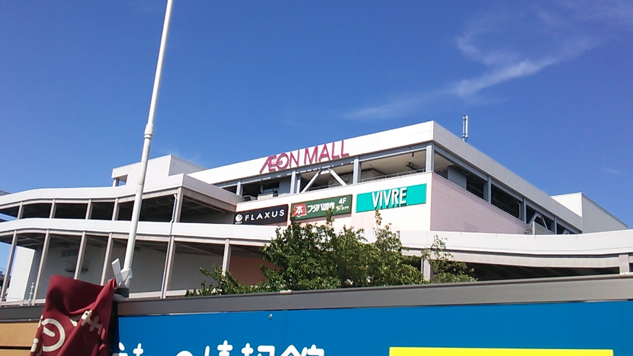 地上5階建ての構造で、そのうち1~4階までが売場となっていて、総合スーパーのイオンを中心に他にも様々なな専門店がありました。時間帯柄家族連れ等たくさんのお客さんで賑わっていましたが、2015年9月にリニューアルオープンするらしく所々一時閉鎖中となっている売場も所々目にしました。