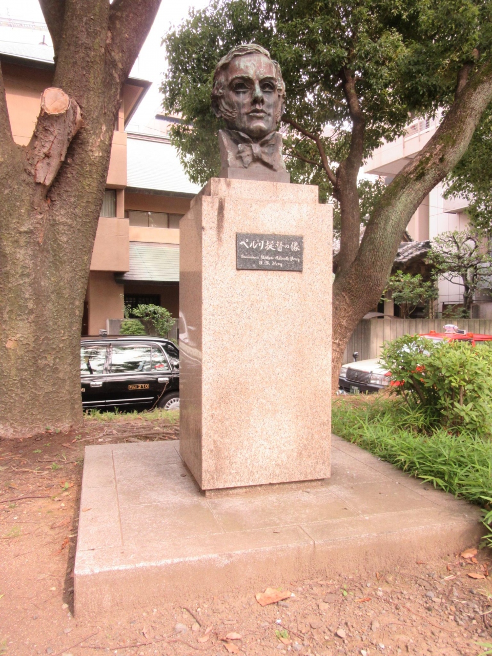 この像は日本開国百年記念事業(昭和28年)でニューボート州からの答礼の像であるとあります。