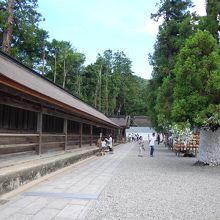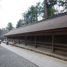 江戸中期の建築。十九間社流造、檜皮葺。本殿外周左右に配置されているが、質素な建物のため、見過ごされやすい。