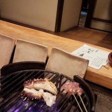 囲炉裏で焼いて食べる懐石がおいしかったです。