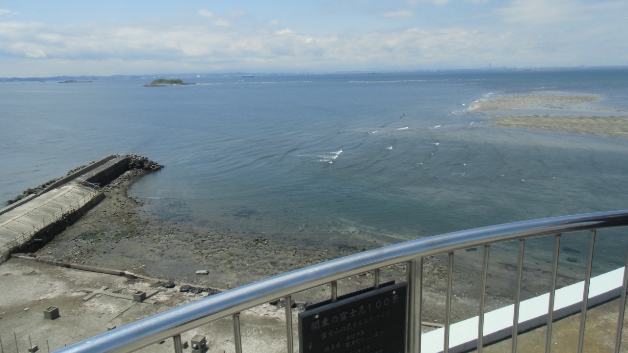 潮風で一部に朽ちていて左側からは昇れなくなっていますが、127段の階段を昇りつめれば、360度を見渡せる東京湾の絶景を見ることができました。