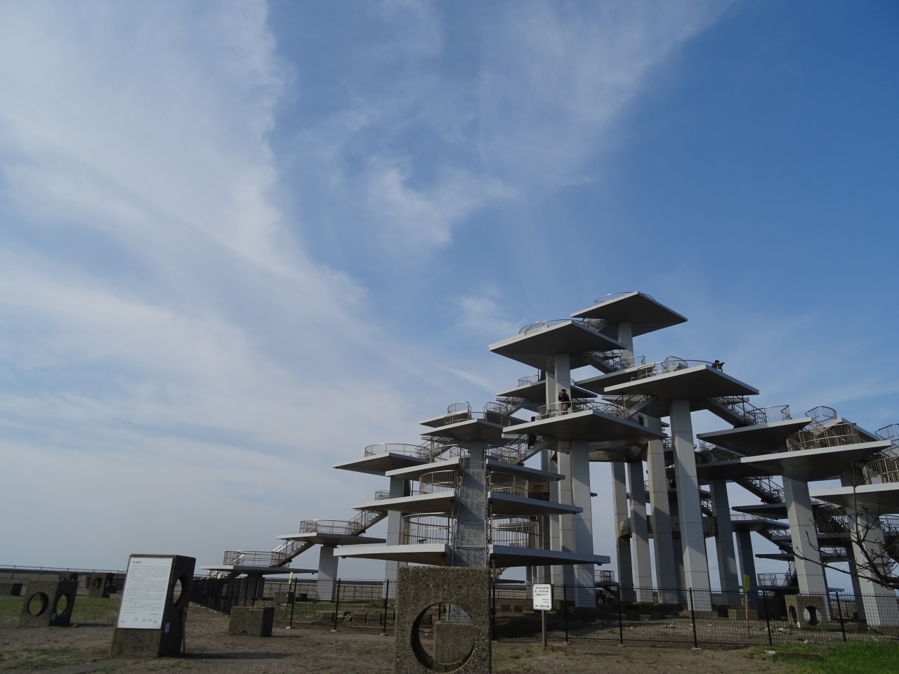 とてもユニークな形をした展望台が印象的です。上る時は何だか迷路みたいで面白かったです。上から見る景色は、遠くの方にボヤっと工場地帯が見えるのが少し幻想的です。