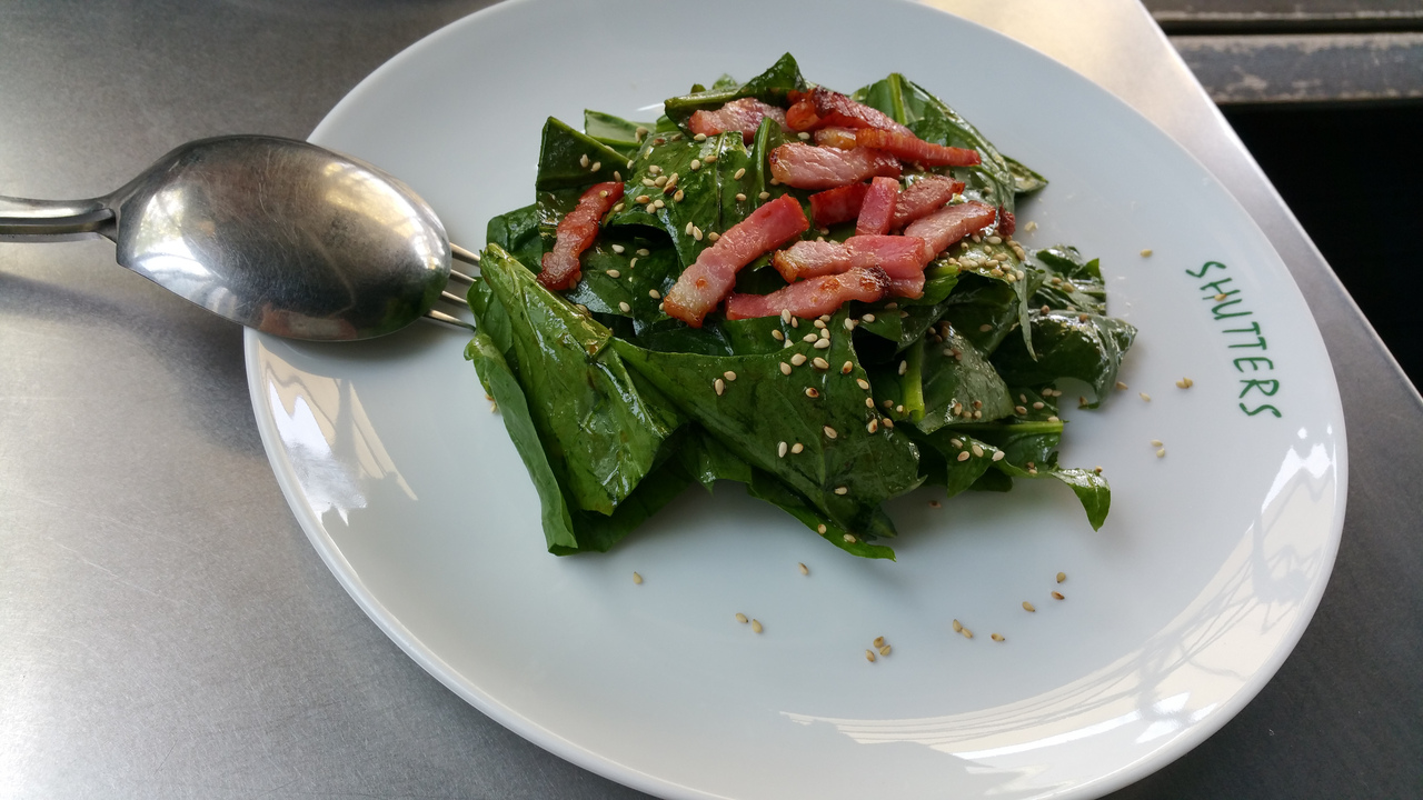 スペアリブ、アップルパイは文句なしにおいしいですが、ホウレン草のサラダもオススメ。