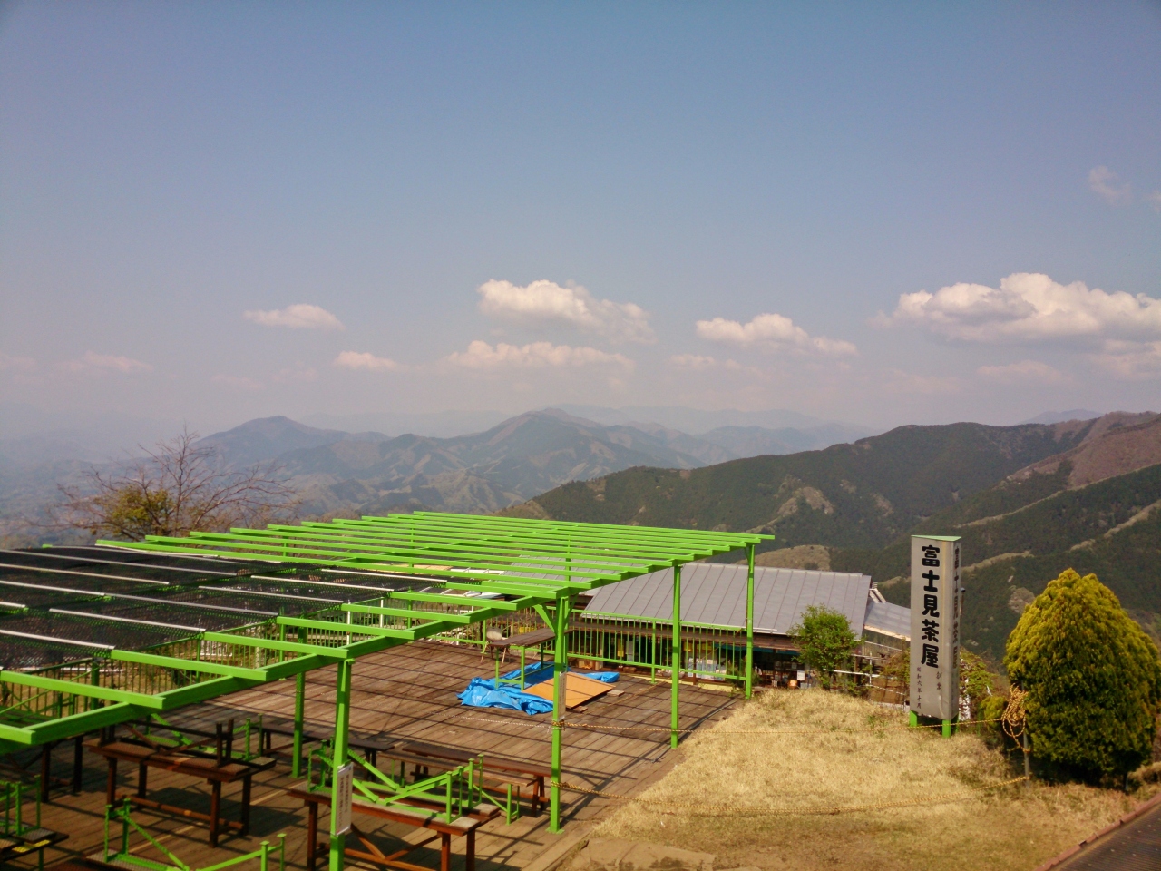 陣馬山山頂には数件の茶屋があり、こちらはもっとも頂上付近に位置する茶屋。天気が良ければその名にあるように絶景の富士山が望めるが、季節によってはなかなかに難しい。おしゃべり好きのご主人ががんばっている。
