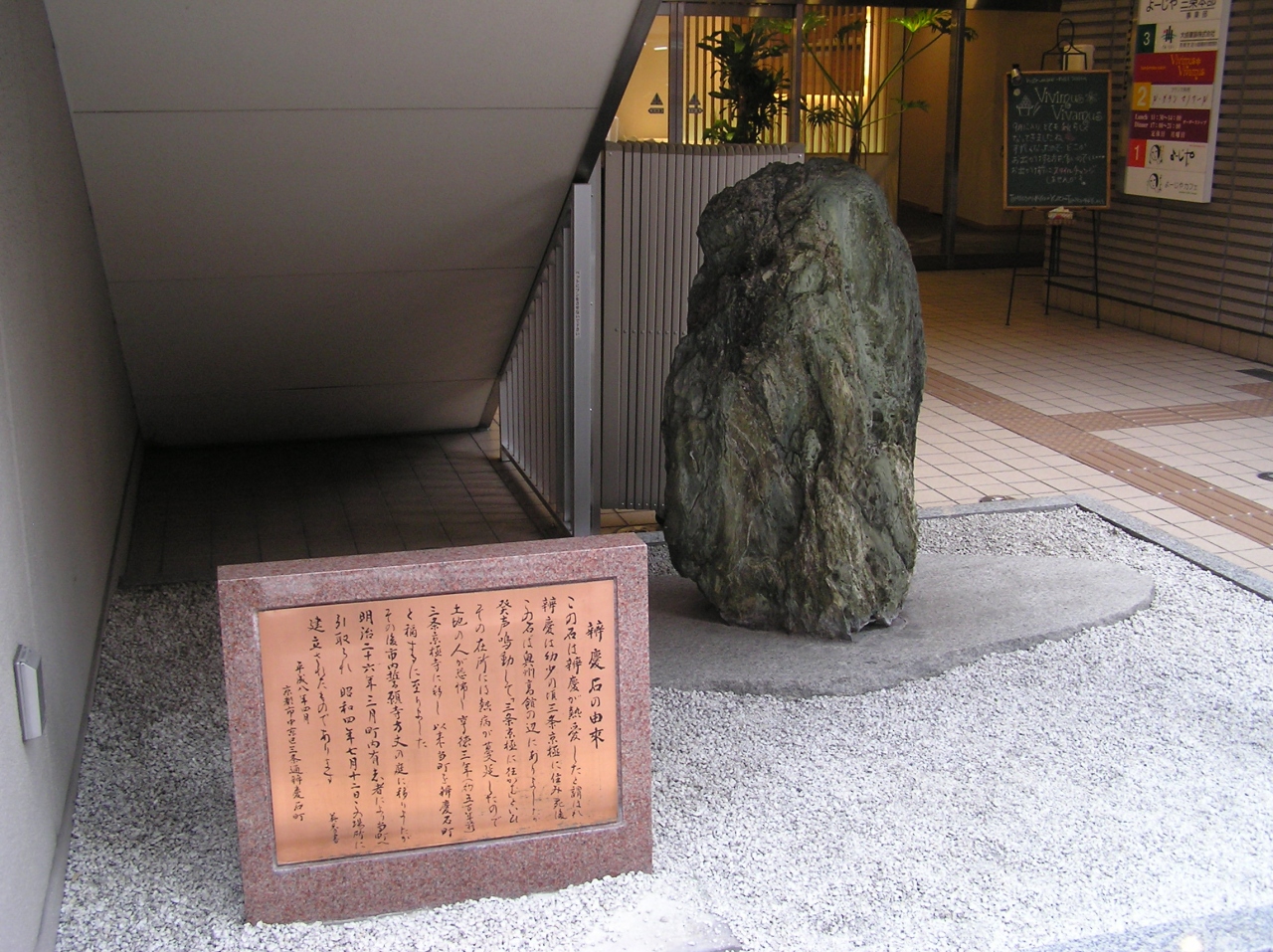 この界隈(今日の弁慶石町)に住んでいた弁慶が大切にしていた石で、弁慶の死亡時には奥州高館にあったが、石が「三条京極に行きたい」と鳴動し、付近に熱病が蔓延したので、人々は1454年、この石を三条京極に移したという。