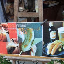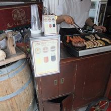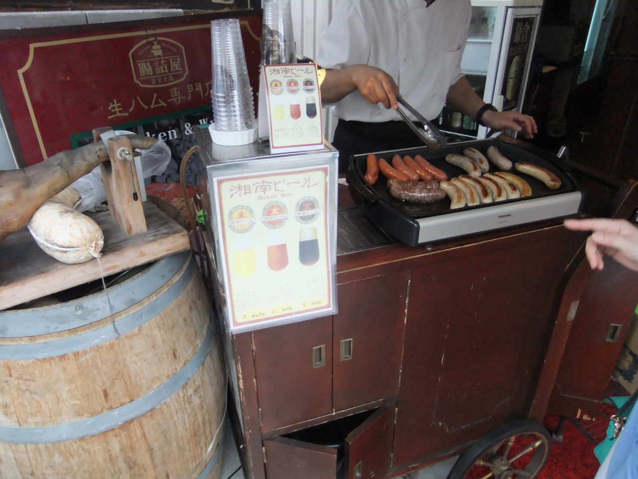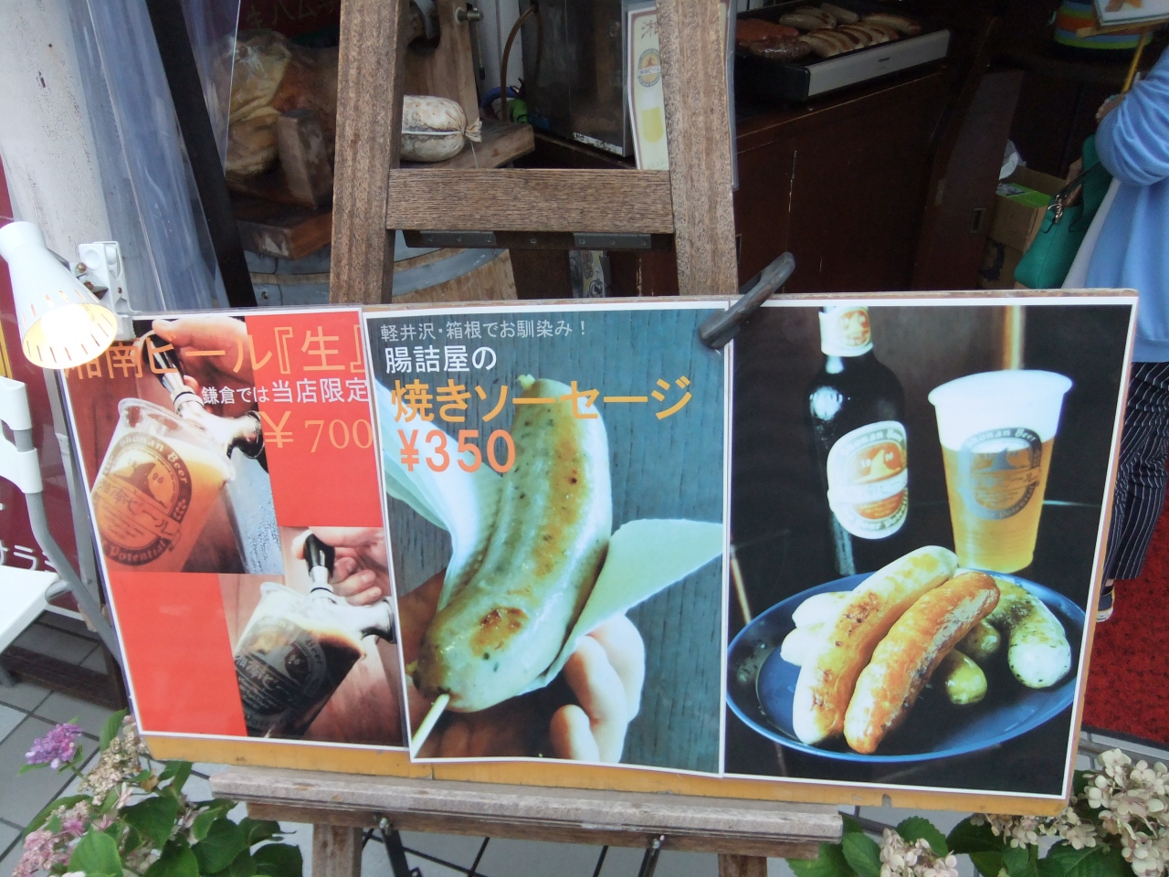 まさにウインナーの店。5種類のウインナーがありますが、どれも美味しそうでした。バジリアン・・というソーセージを頼みましたが、大きくて皮がしっかりしていて肉汁がたっぷりで美味しかったです。この暑い時期ですのでビールとぴったり合いました。ビールは地ビールなので仕方がないですが、プラコップで700円はちょっと高めだと思います。歩きつかれてのどが渇いたころに鎌倉ビールとウインナーはマッチしました。
