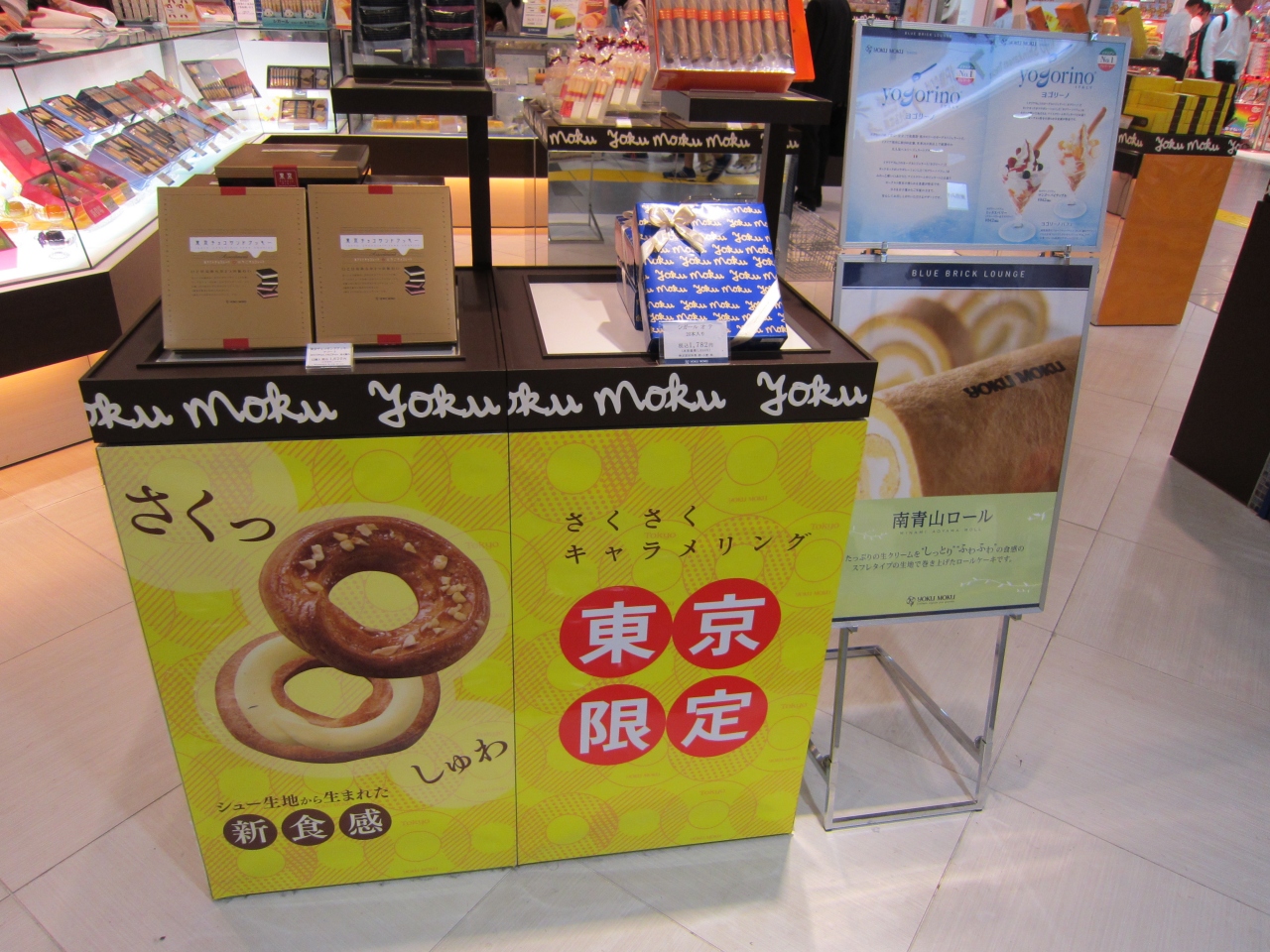 八重洲口の東京一番街にありました。東京限定のサクサクキャラメリングは、シュー生地でできています。家族へのお土産に買いました。南青山ロールはおいしそうでした。少し高級なお土産が欲しいときに買いたいなと思うお店です。