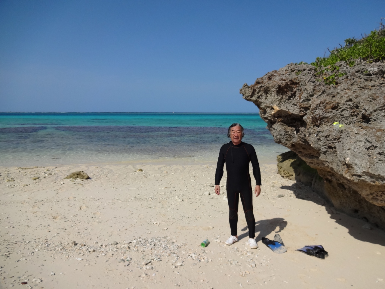 シュノーケリングガイドと平良港で待ち合わせその日の風の状態や潮の流れを考慮しガイドが池間に行くことを提案された。もとよりガイドにお任せし彼の車についてレンタカーを走らせた、20分程で池間大橋に到着、海の色が素晴らしいその中を池間島に向け大橋をひた走る、角度により海の色が様々に変化し素晴らしい、池間に入るとより素朴なキビ畑や点在する建物がみえる。池間の東海岸パーキングに止めていよいよシュノーケリング。