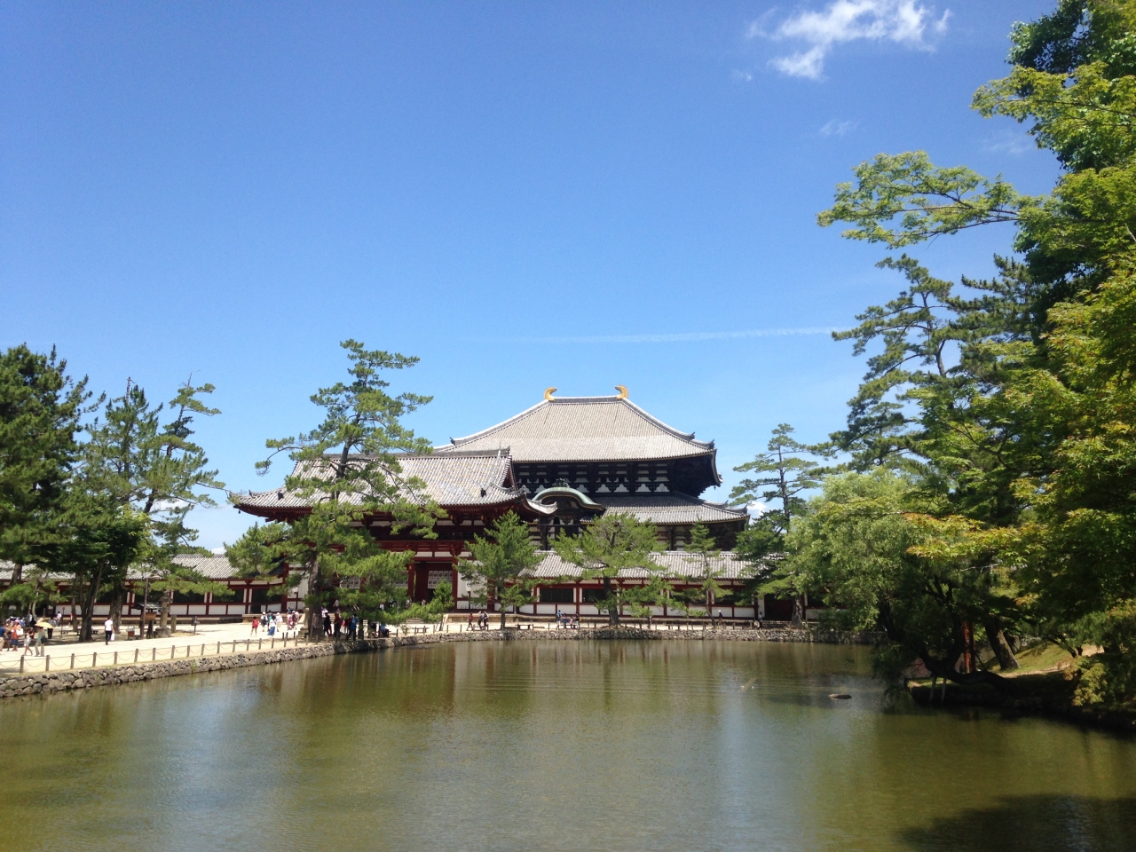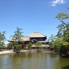 池と大仏殿を直線上で観るポイントが綺麗です。