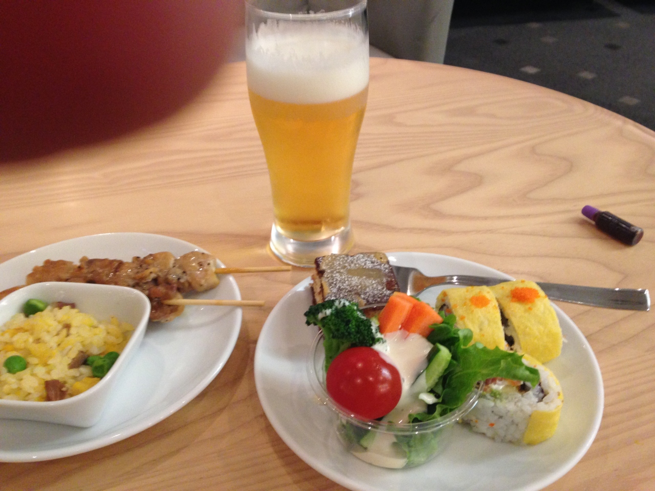 ドリンクは一通りございます。フード類は小さいお蕎麦、チャーハン、焼き鳥、サラダなどがございます。意外とおかゆが美味しかったです。