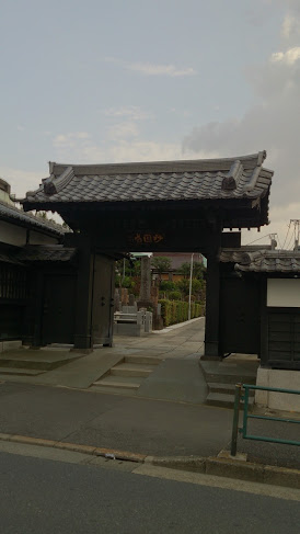 バス通りに面していて、寺町である谷中の中では比較的、賑やかなところにある寺院です。それでも山門を入ると、奥行きのある境内で、本堂まで石畳の通路を50mぐらい歩く感じで、意外なほどひっそりと落ち着いた空間が出来上がっています。本堂までの通路の両側は墓地ですが、開けた空間を歩くので、薄暗くなく明るい感じだと思います。本堂は奥まで進んで、さらに階段で15段ぐらい上がったところにあって、青銅色の屋根が葺かれた本堂と寺務所の様な建物が印象的です。また、本堂の横に進むとお隣の妙法寺とつながっているので、お寺めぐりする際には効率よく移動できます。