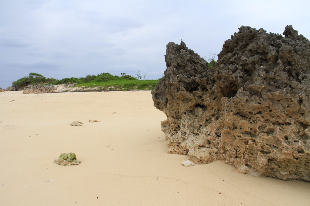宮古島の北端と美しく長い橋で繋がる島です。周回道路と海岸線にはちょっとした高低差があるので、どこからでも浜に降りられるわけではありませんが、ちょっと苦労して砂浜に降りると、手が加えられてない自然のビーチが広がり、とてもきれいです。島の道路は夜になるとヤシガニや大きなヤドカリが歩いているので、車の運転には気を付けてください。