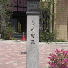 九段下交差点から目白通りを飯田橋方面に右側を進むと、飯田橋1丁目の交差点(九段下交差点から2つ目の信号です)の飯田橋よりの歩道にこちらの台所町跡の標柱があります。江戸城の台所衆の組屋敷があった場所だそうです。今の風景からは想像できないと思いました。