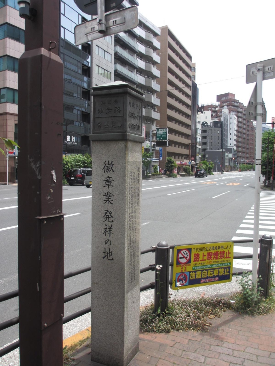 飯田橋散歩路には13ヶ所歴史の標柱がありますが、こちらは目白通り沿いにある12ヶ所の標柱のうちの一つです。九段下と飯田橋の中間あたりの歩道橋がある場所のやや九段下より飯田橋に向かって左側にあります。この近くに1885年に日本帝国徽章協会が作られたのが徽章業の始まりだそうです。この辺りは、多くの学校が設立されたり、牧場があったりしただけではなく、工業もあったとはずいぶん盛り沢山だなと思いました。