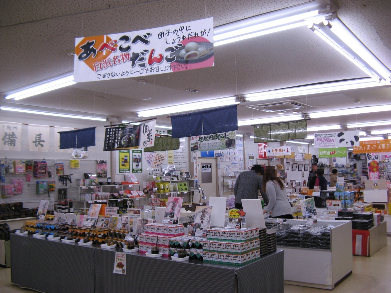 館内には、魚介や干物、海産物加工品、お酒、紀州銘菓などのお土産が種類ごとにコーナーが別れていて買い易くなっています。