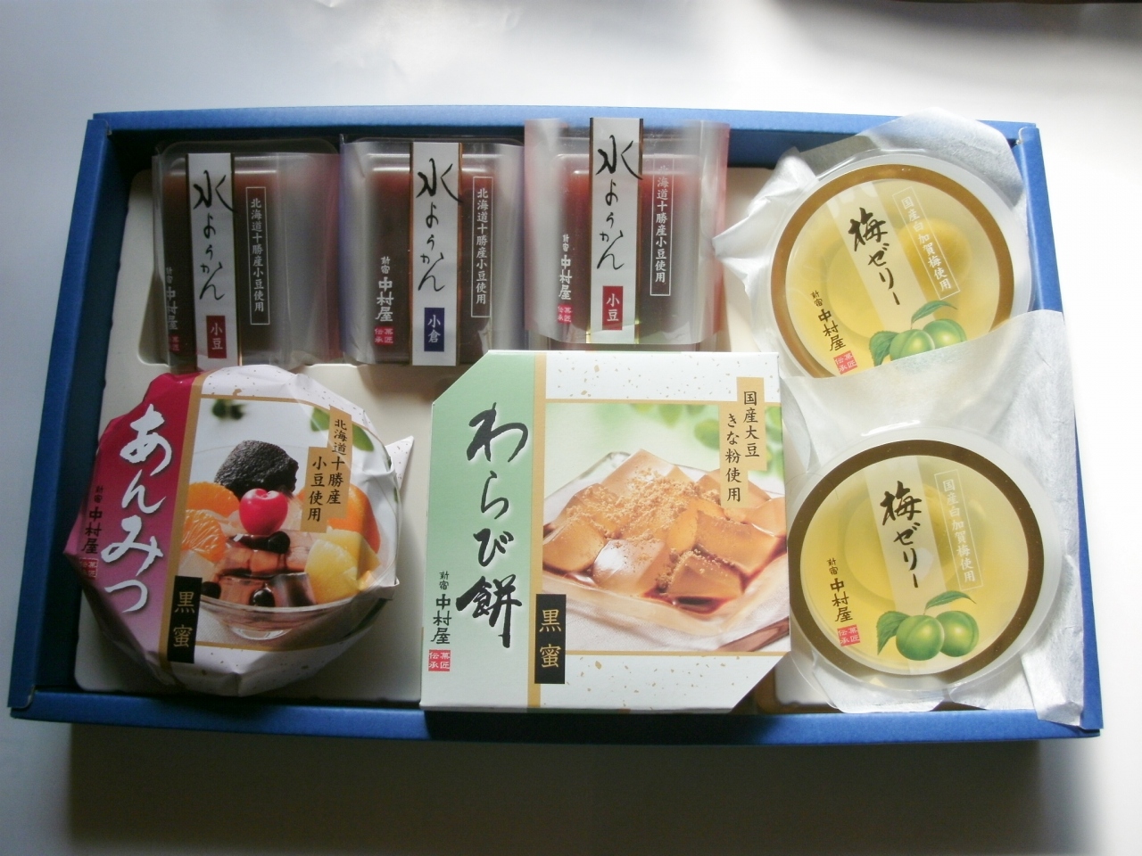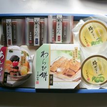 “詰め合わせセット”を購入しました。わらび餅はしっかりした食感で黄粉の風味が強く、梅ゼリーはまろやかで舌触りが良くて美味しかったです。一箱でいろんな味が楽しめてよかったです。