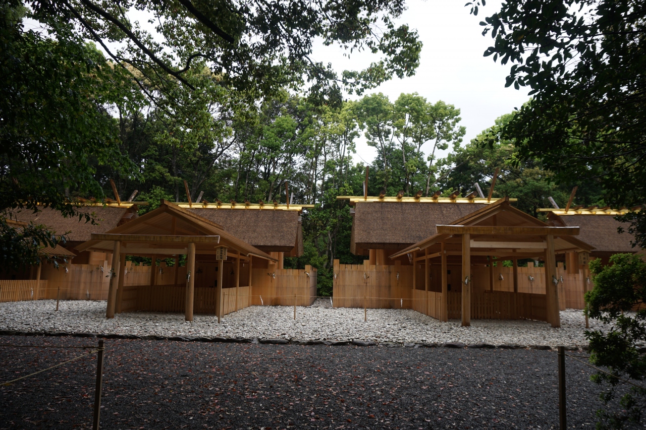 月読宮は、内宮から五十鈴川駅まで歩くと途中にあるのですが、かなり遠くて不便な場所です。アマテラスオオミカミの弟神の月讀尊が祭神で、内宮別宮としては荒祭宮に次ぐ順位。ただ、特徴は、神明造の社殿が4つ並ぶ姿。正宮以外でこうした形式は珍しく、苦労して行ってもその甲斐はあると思います。