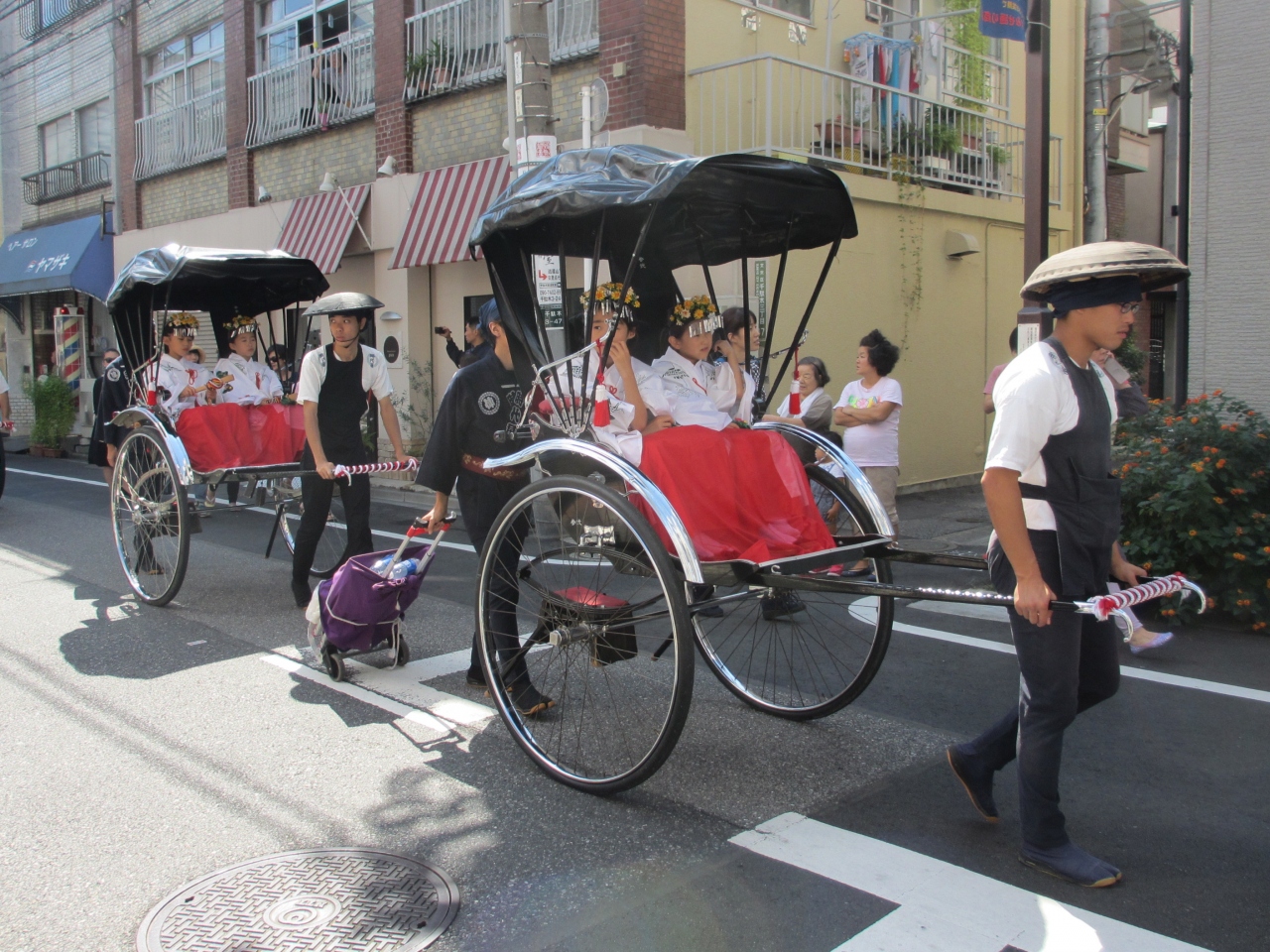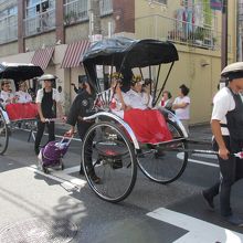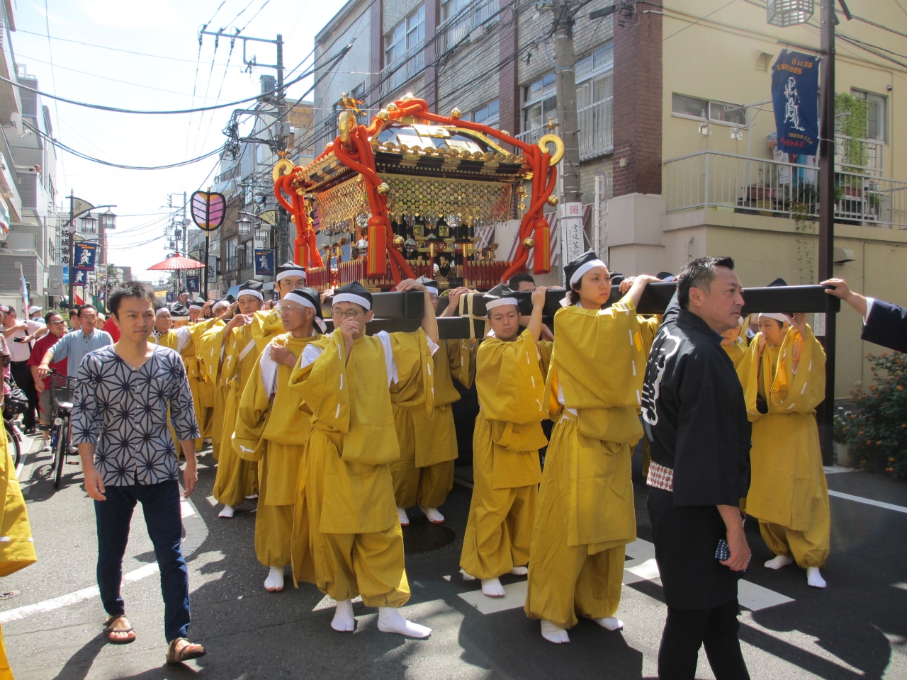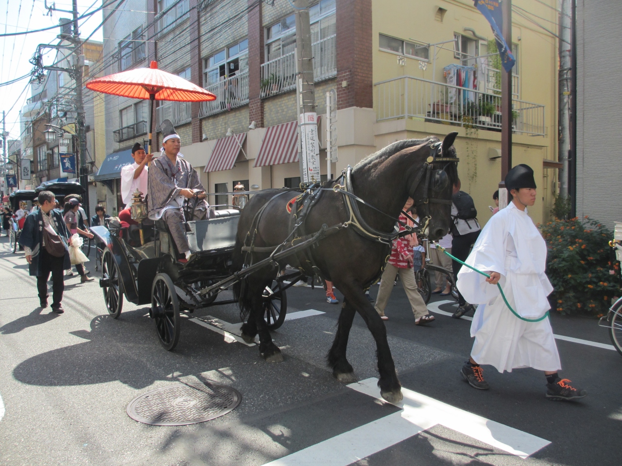 山王祭、神田祭と並ぶ江戸三大祭りの一つ、根津神社例大祭を見てきました。毎年9月中旬の土曜日、日曜日に行われます。町の中を、正装を着て大きな神輿を担いだり、神輿用の袢纏を着て大きな山車を曳いたりして神社に向かいます。馬や人力車も参加します。神社では太鼓に合わせ、舞が演じられます。境内にはたくさんの屋台が出て祭りを盛り上げます。沿道には祭りを見る人たちでにぎわいます。見学する場合はコースと時間を確認ください。