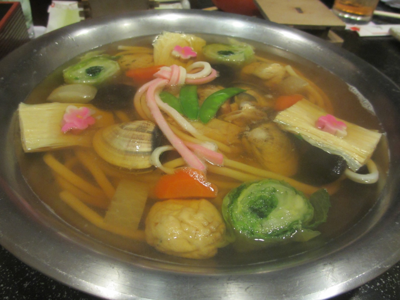 母の誕生日祝いにうどんすきを食べに行ってきました。大正時代から引き継がれる伝統のうどんすきは関西風の出汁の効いた、さっぱりした味付けでした。野菜、鳥肉、エビ、あなごなどの具とうどんを鍋に入れ食べます。エビは生きたまま出され、煮立った鍋に自分で入れますが、それが苦手な人には調理されたエビが最初から出てきます。うどんも最初出てきた量で充分ですが、足りない人には無料で追加してくれます。誕生祝だったこともあり、プチプレゼントもいただきました。その他、突出し、刺身、デザートもおいしかったです。寒い日だったので心身ともに暖まりました。