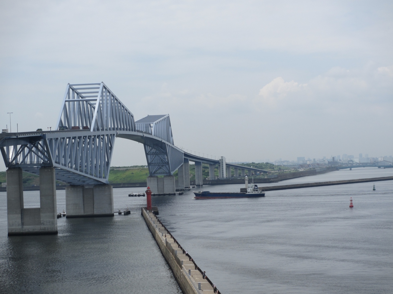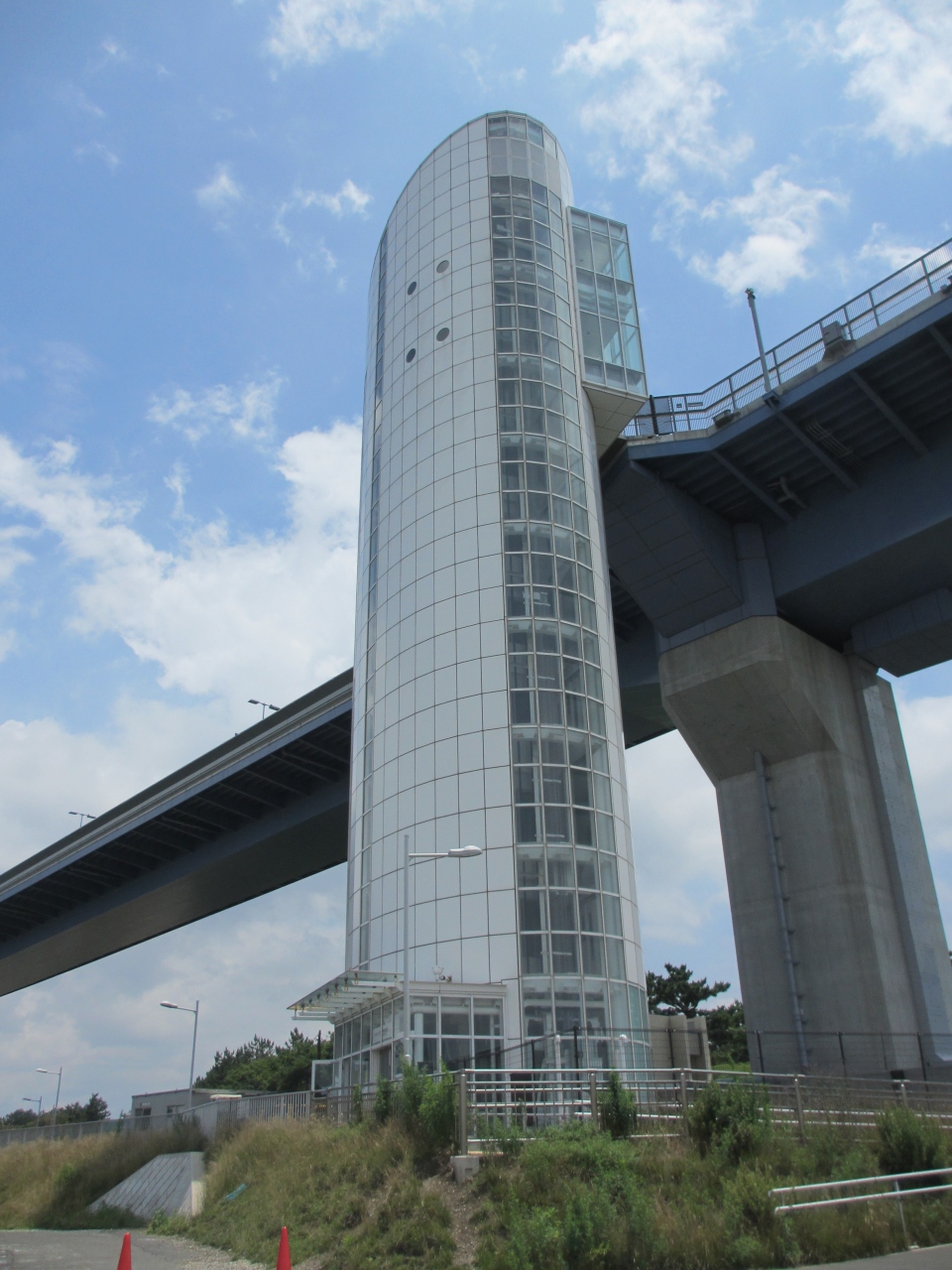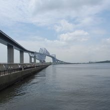 新木場駅からバスで10分ほど行ったところにあります。完成当時は大変な混みようだったようですが、訪れた日は平日だったこともあり、周辺には釣り人以外はほとんどいませんでした。橋のすぐそばには展望台もありエレベーターで橋の端まで行け、そこから橋を歩くことができます。しかし磯から見たゲートブリッジの方が迫力がありました。近くには風力発電やキャンプ場もあります。バスの本数が少ないので計画的に行動する必要があります。