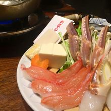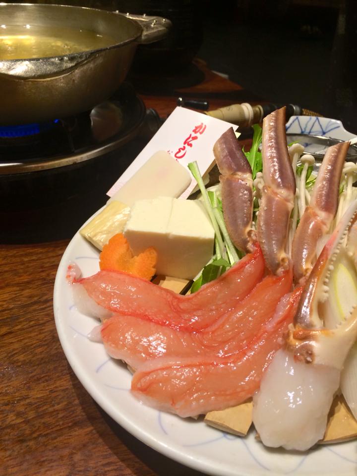 オーダーしたのは『カニしゃぶ』。新鮮なカニとお野菜、お豆腐などを頂きました。