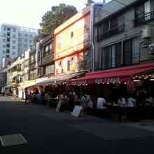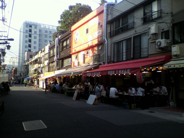 場外馬券売り場が近いせいもあるのか、店前の道路にセッティングされたテーブルで真昼間から飲んでご機嫌になってる人が多いこと多いこと!外国の観光客もなかなか多いです。