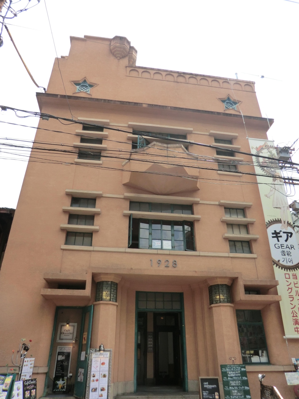 昭和3年に建てられた毎日新聞の社屋でした。設計は武田五一。随所にアールデコの意匠を見ることができます。たとえばバルコニーや玄関のランプカバーなど、武田五一の得意とするグラフィックデザインを見ているようです。