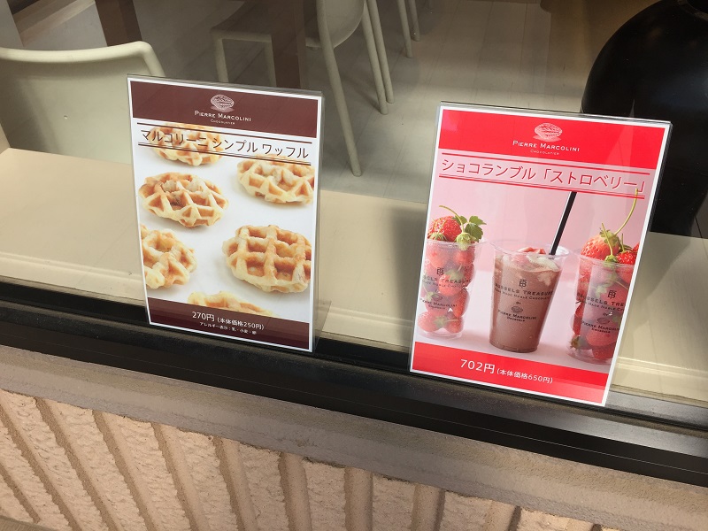 酒々井のプレミアムアウトレットにあるピエールマルコリーニなんですけどゴディバの並びにあるんでどちらにしようか迷っちゃいますね。家族で一端で一人ひとりみんな違うのを選ぶことにして両方行ったんですけど、ワッフルとかもうまかったですよ。