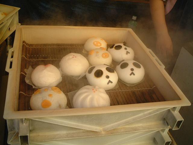 長崎の中華街に比べるとかなり規模の大きな中華街です。似たようなお店がたくさんあるのでどこに入っていいか分からなくなります。おもしろいなと思ったのは、パンダの模様の肉まん。日本らしくてかわいいアイディアです。